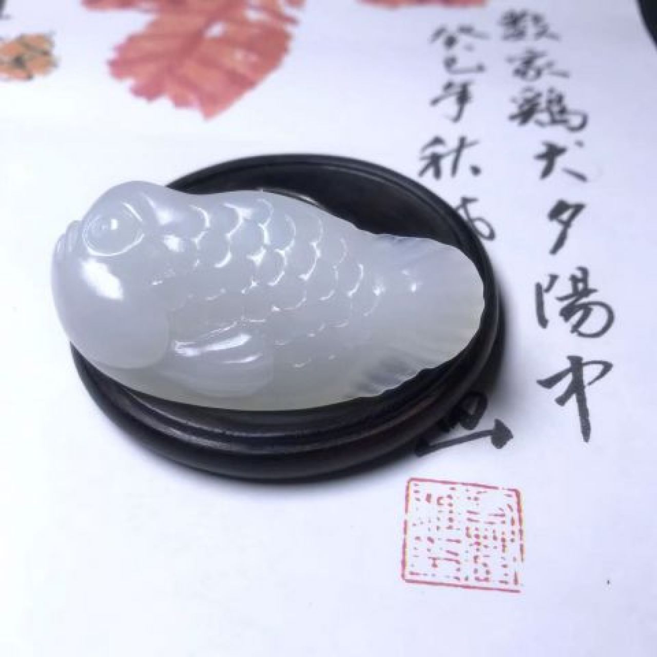 天然和田玉羊脂玉年年有余吊坠挂件饰品(55mm28mm11mm)