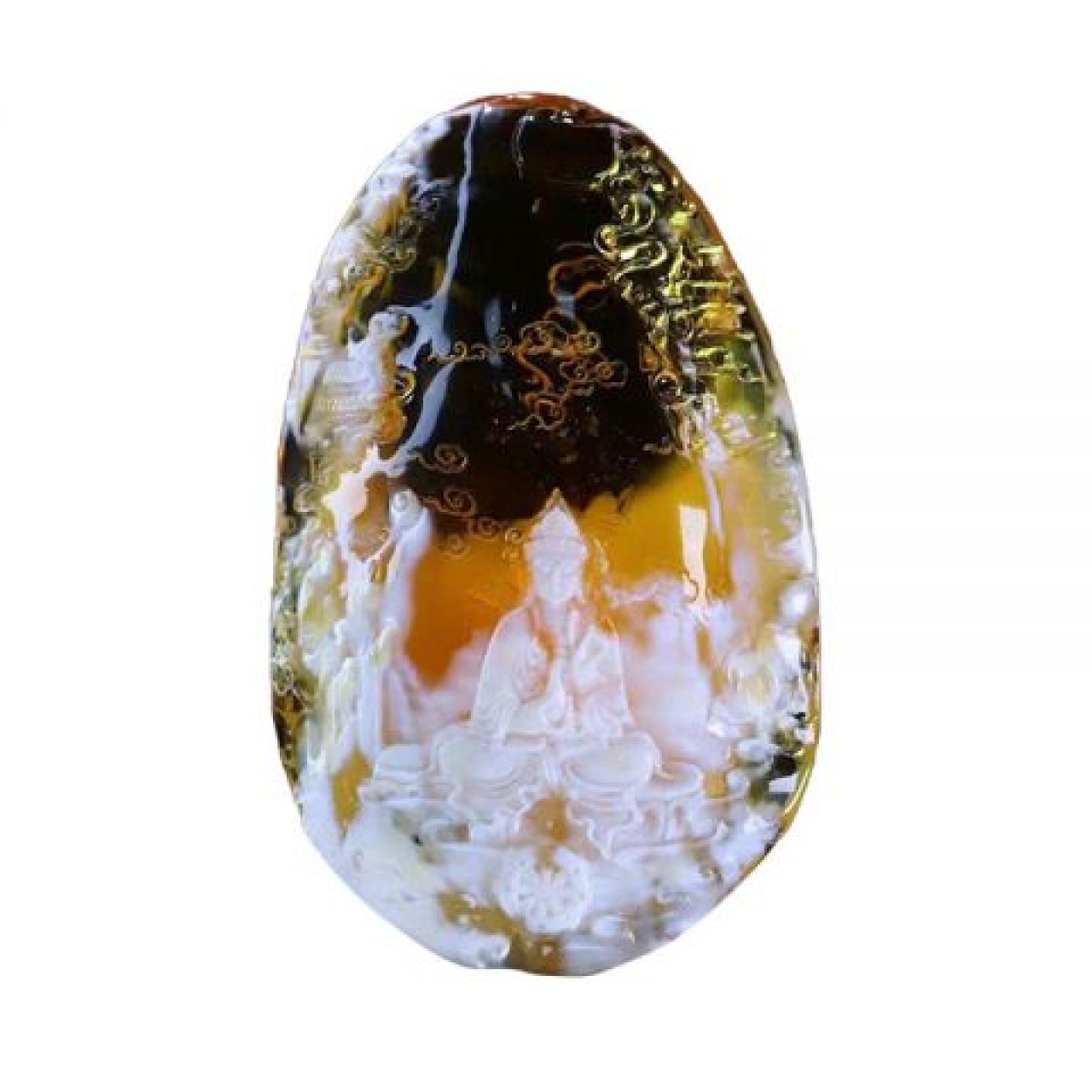 天然原矿蜜蜡牡丹花满蜜鸡油黄雕刻吊坠不含项鍊(33x31x20毫米)