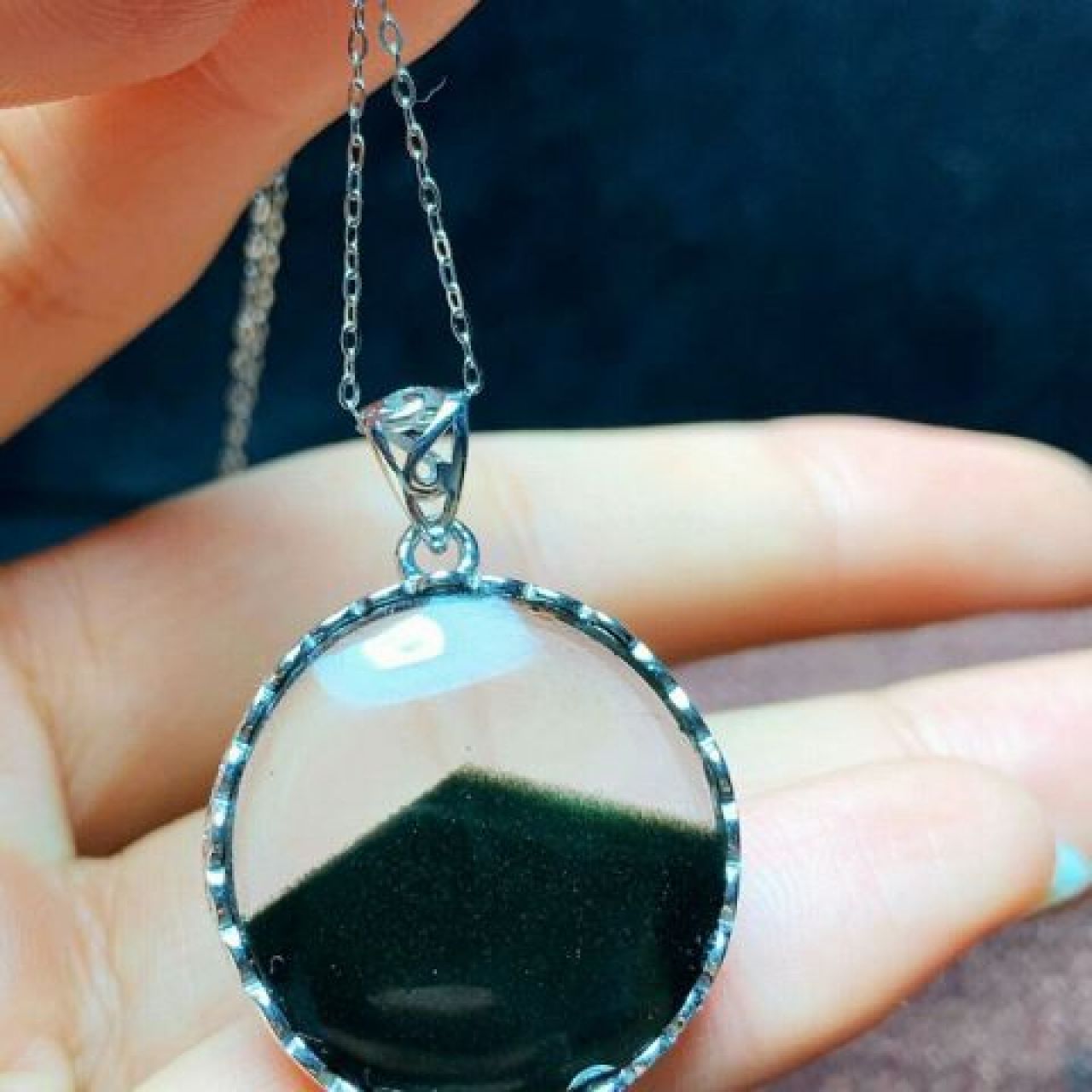 菠菜绿老料和田玉圆珠吊坠18K挂件项链