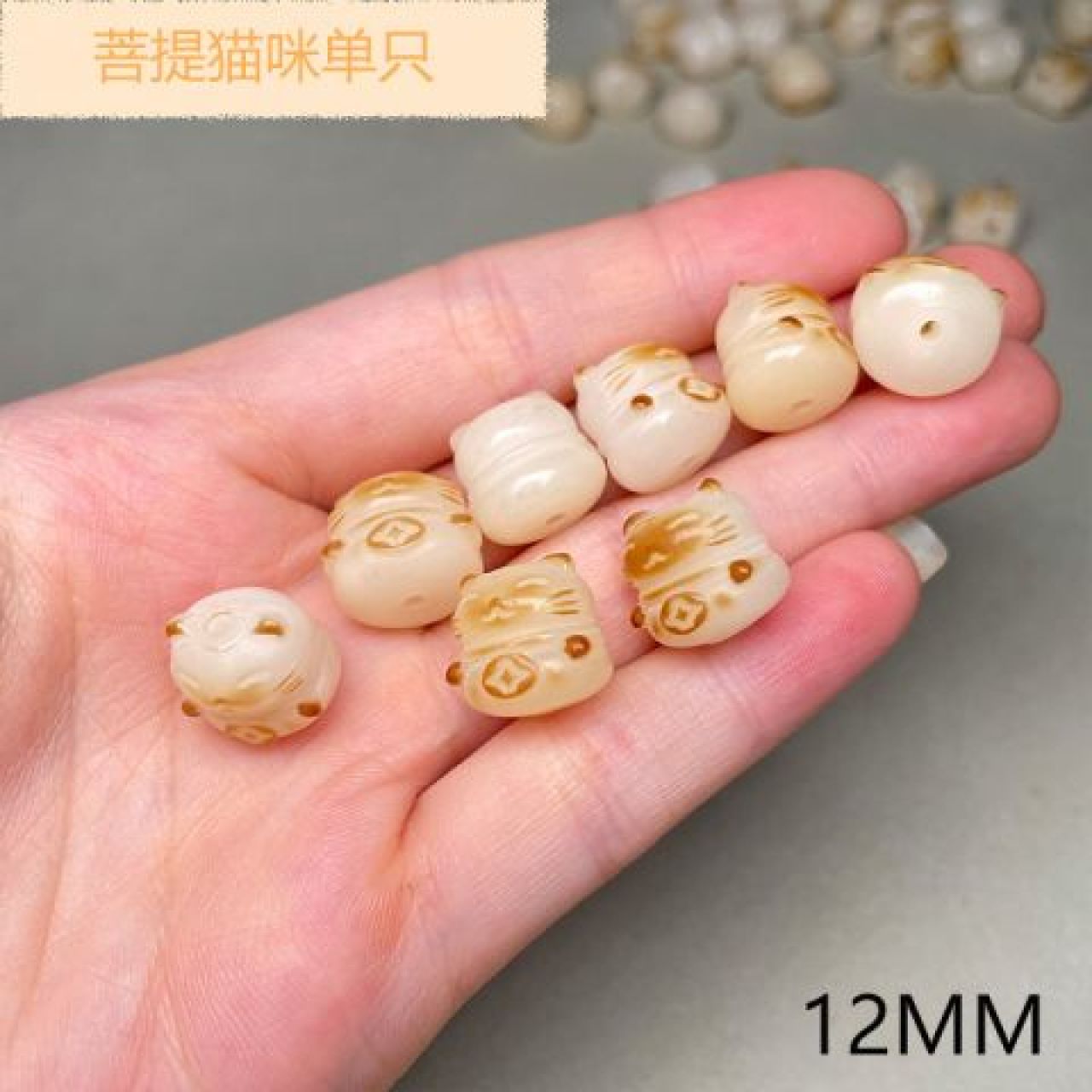 白玉菩提招财猫配饰雕刻DIY散件