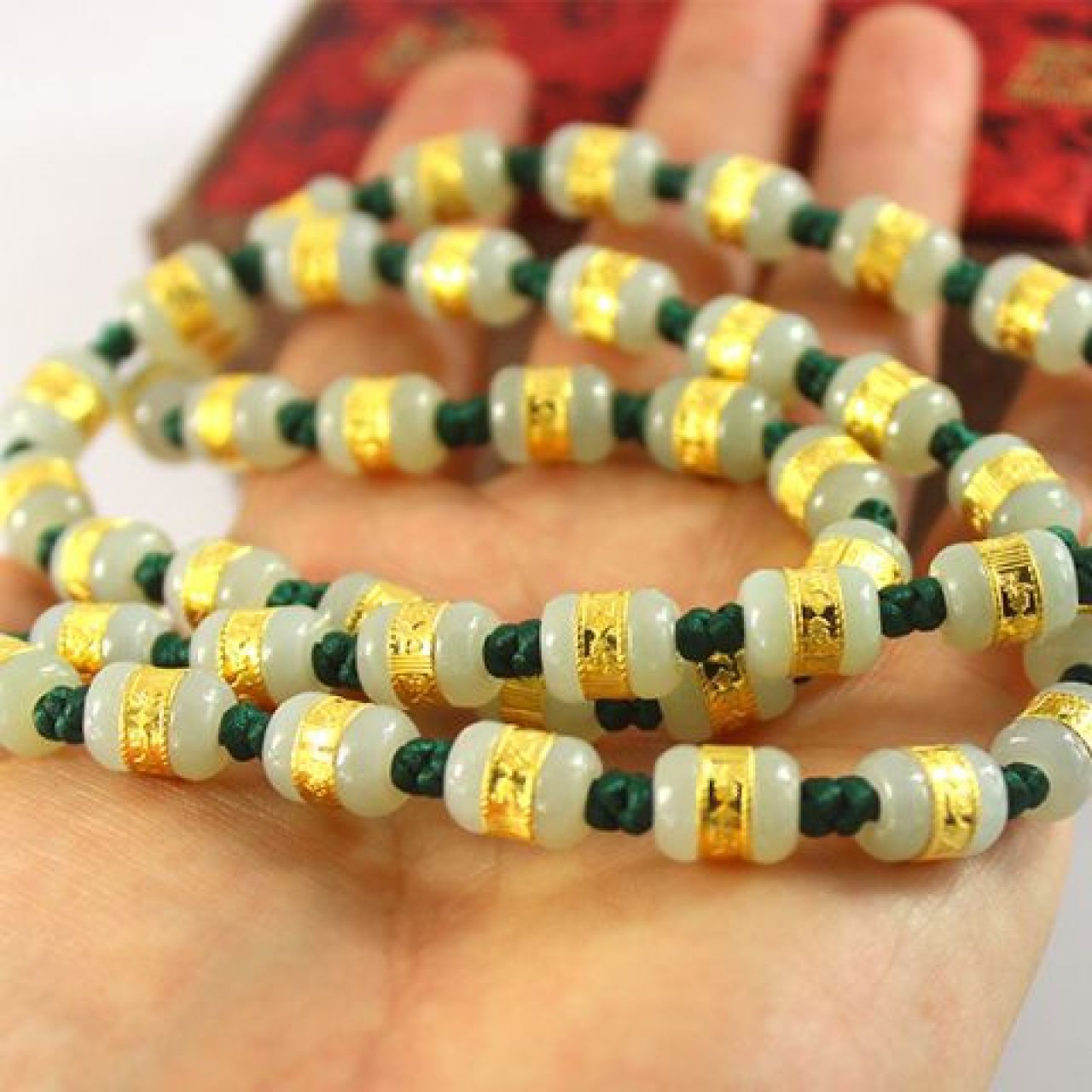 天然金镶玉男士款和田玉挂绳翡翠项链(10*8mm墨绿绳60cm)