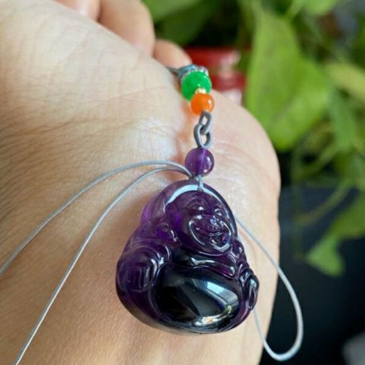 水晶紫发晶三轮骨干雕刻佛吊坠