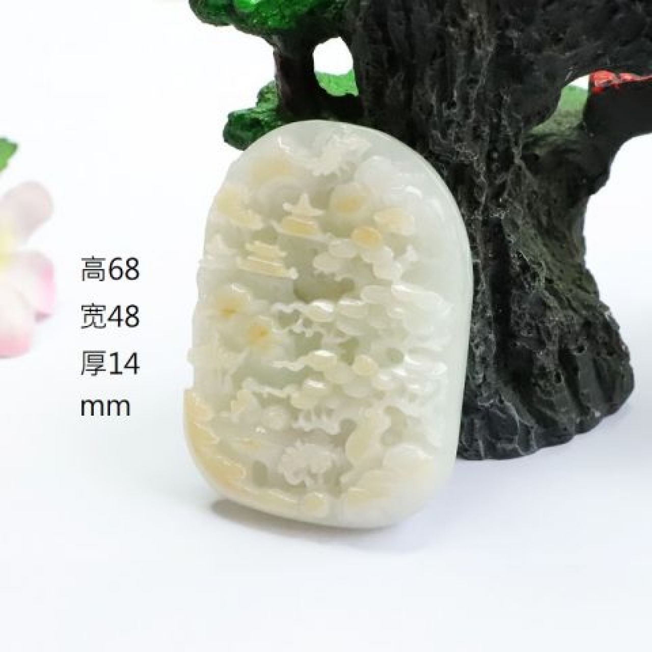 缅甸玉石天然翡翠黄翡俏色镂空精工高货山水牌挂件