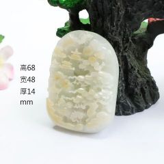 新疆和田玉糖白玉镂空雕刻十二生肖糖料蛇玉吊坠 (55*25*12mm)