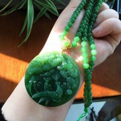 田碧玉 牡丹花 喜雀吊坠挡配碧玉6毫米108颗珠链项链