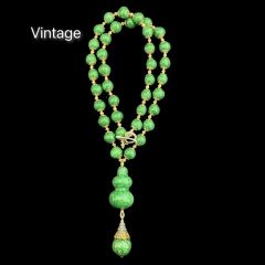 蜜南中古Vintage 复古宫廷风老料子绿蛙皮搭配小葫芦坠长款项链(72CM)