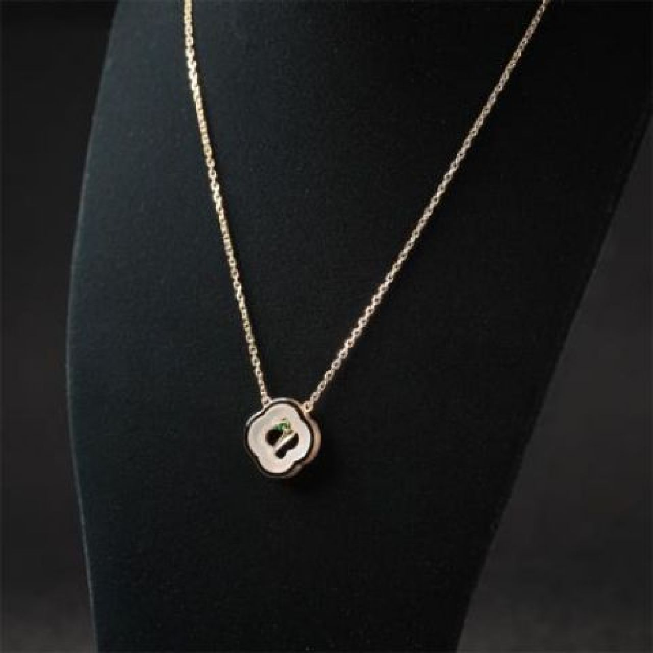 s925银镀金天然和田玉青玉如意简约女式项链吊坠