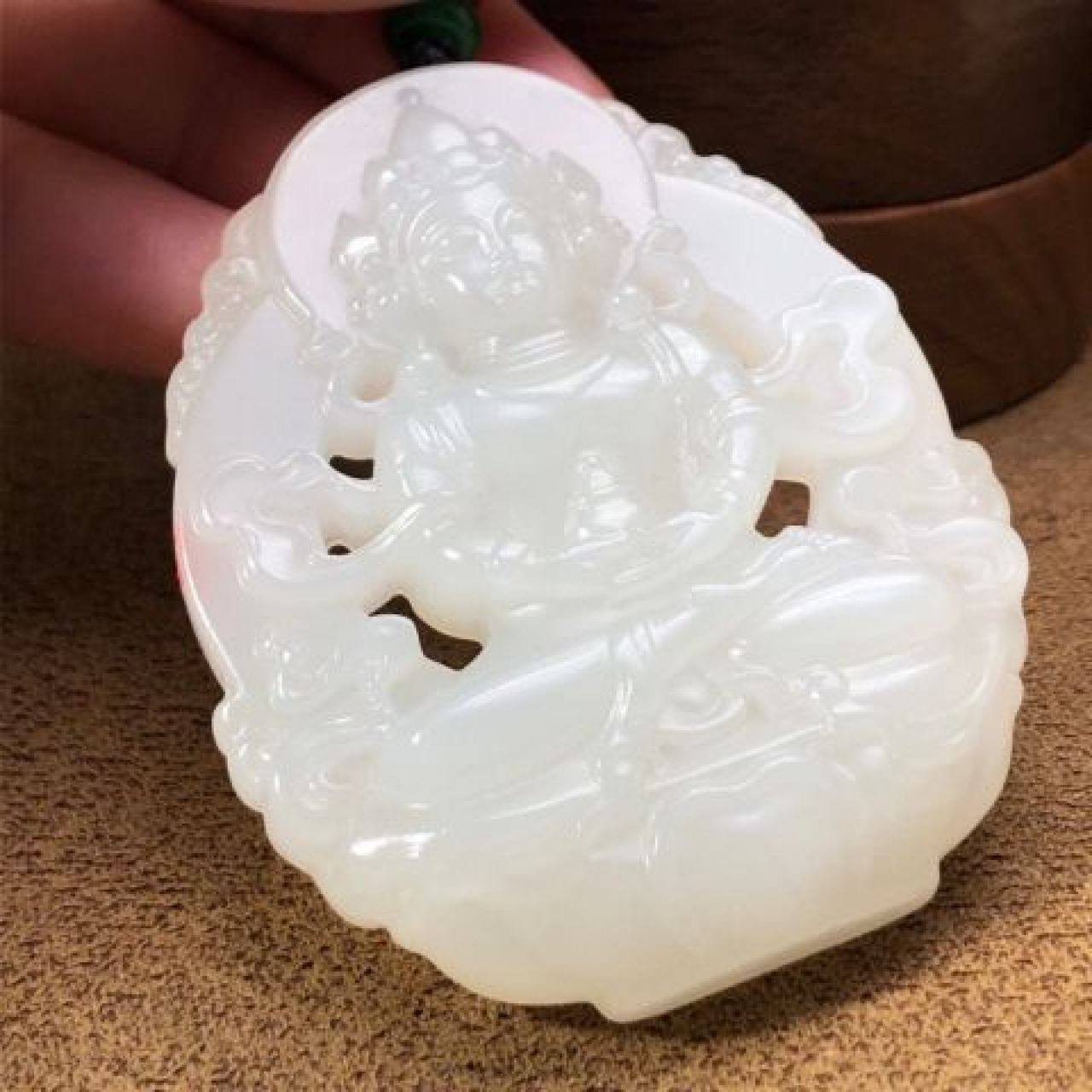 新疆和田玉观音经典镂空雕刻玉质油润吊饰(11-12CM)