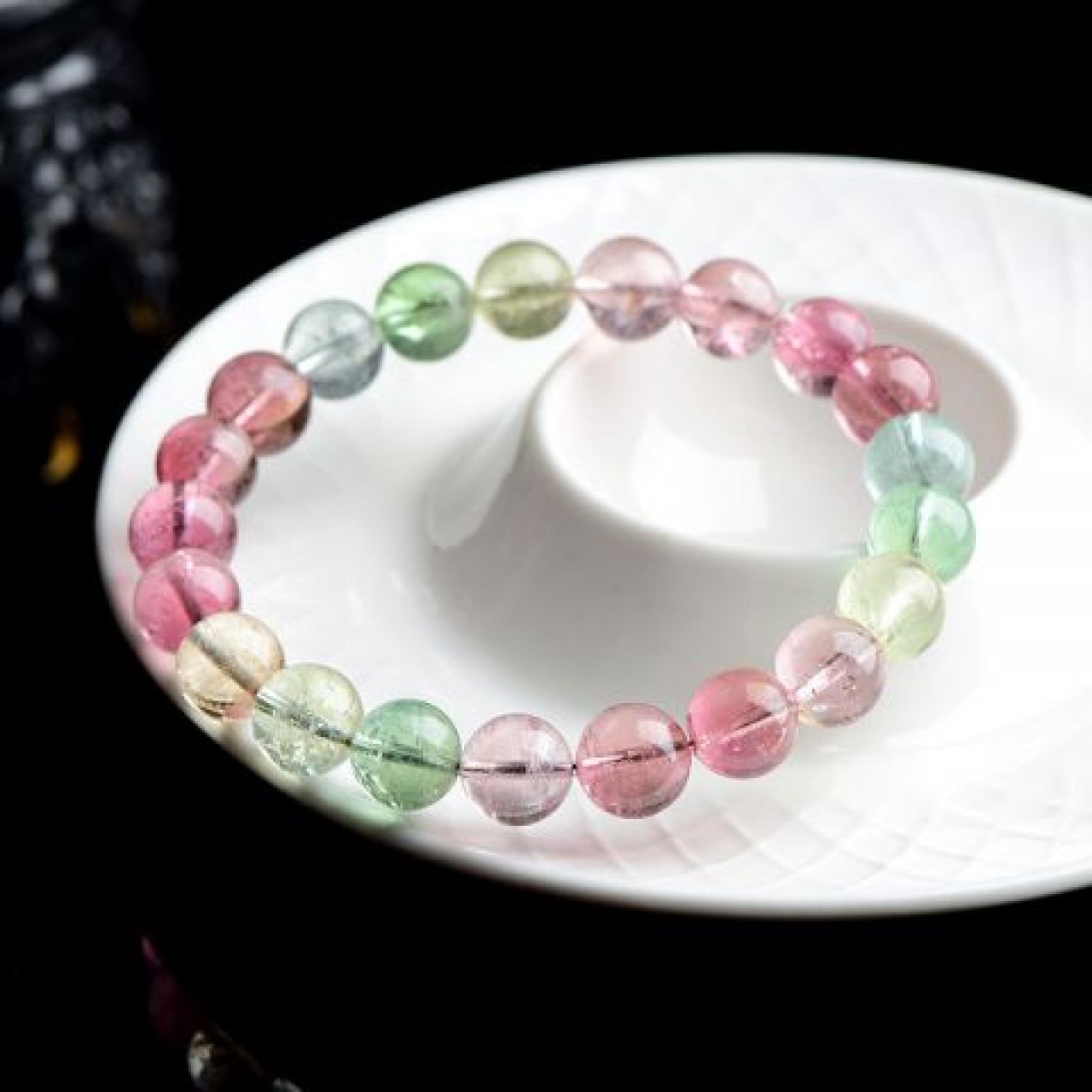 "天然7A级冰种冰淇淋色彩虹碧玺圆珠手链手串7.8~8mm单圈(24颗左右) "