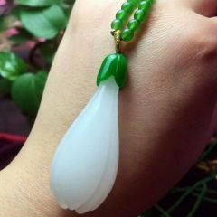 新疆和田玉天然羊脂玉玉兰花吊坠毛衣链