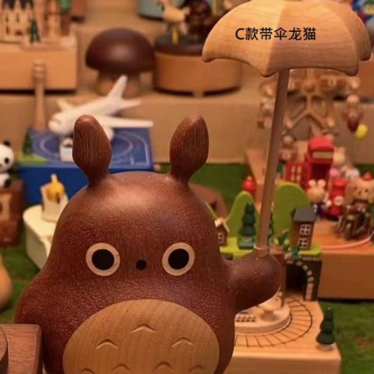 杨木雕风车大小龙猫手把件 乌檀木龙猫摆件(随机出货)